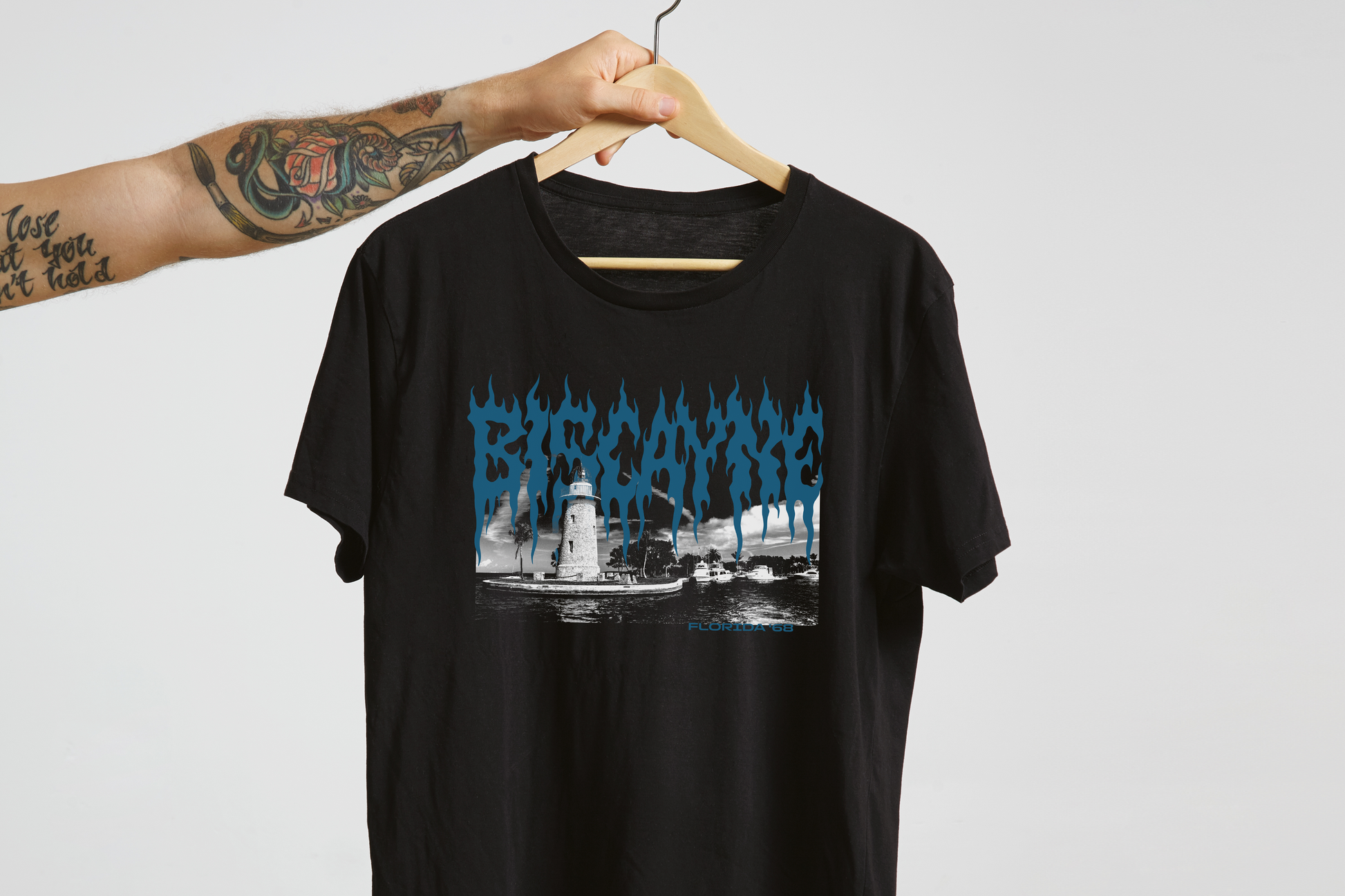 Inspired by classic band tour shirts, this band themed national park shirt celebrates Biscayne National Park.