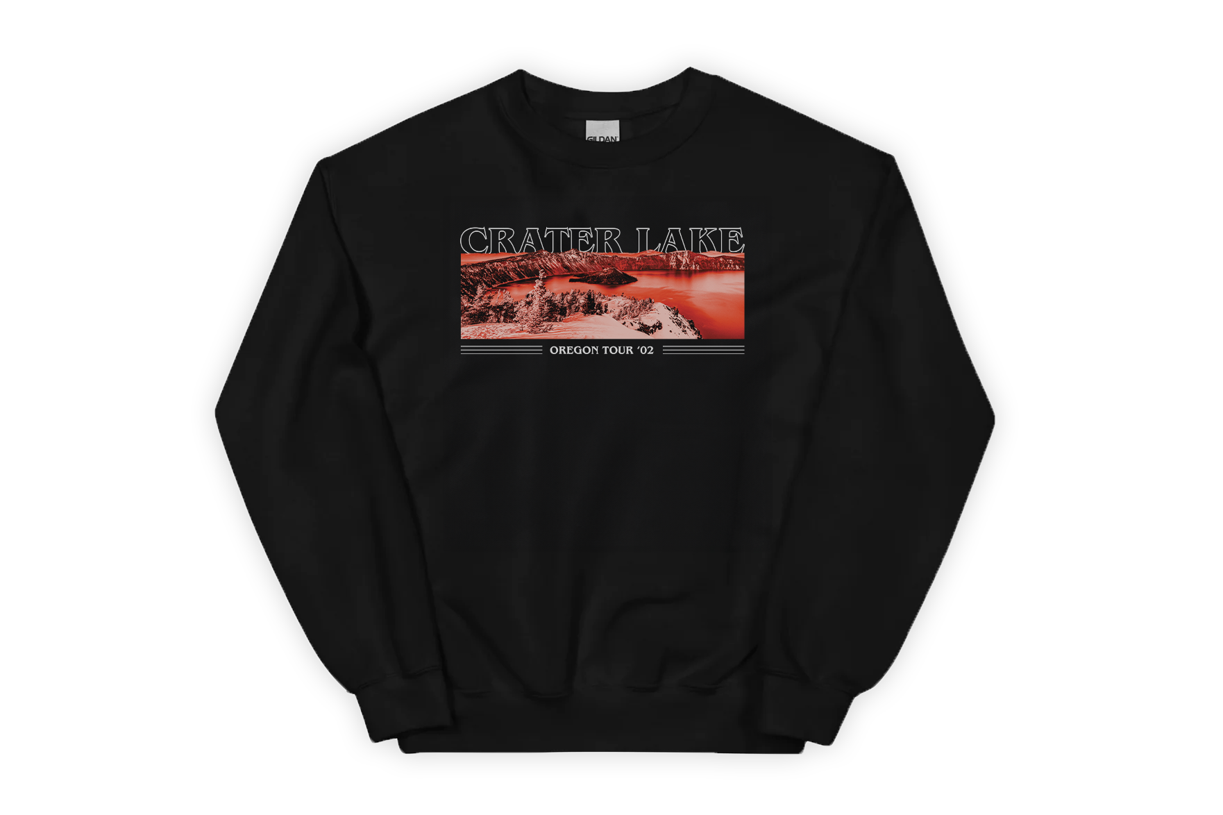 Inspired by classic rock band tour shirts, this crewneck celebrates the Crater Lake National Park.