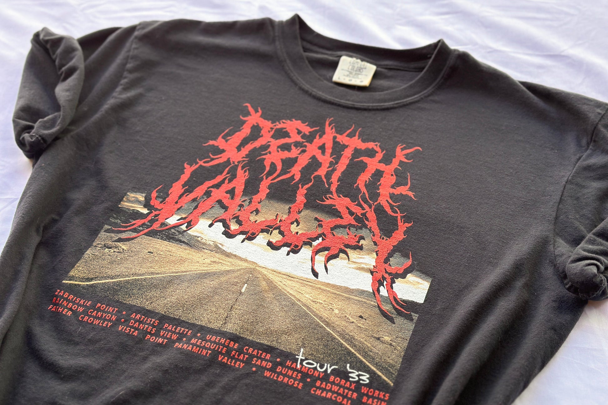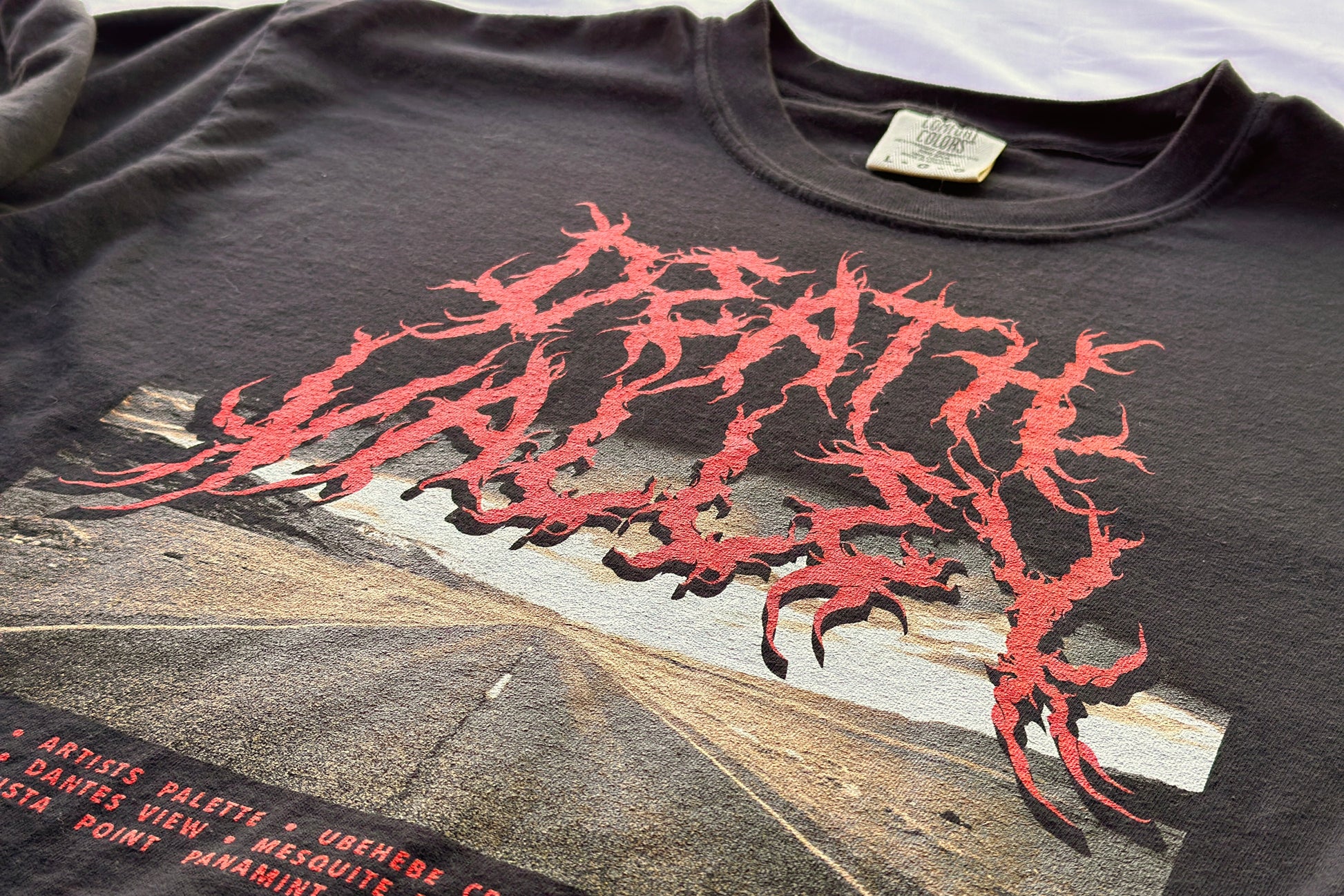 Inspired by classic metal band tour shirts, this band themed national park shirt celebrates Death Valley National Park.