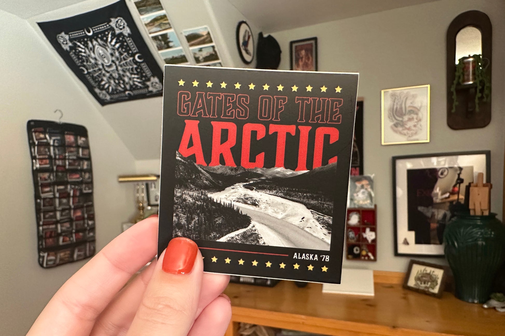 Inspired by classic rock band tour shirts, this design celebrates Gates of the Arctic National Park.