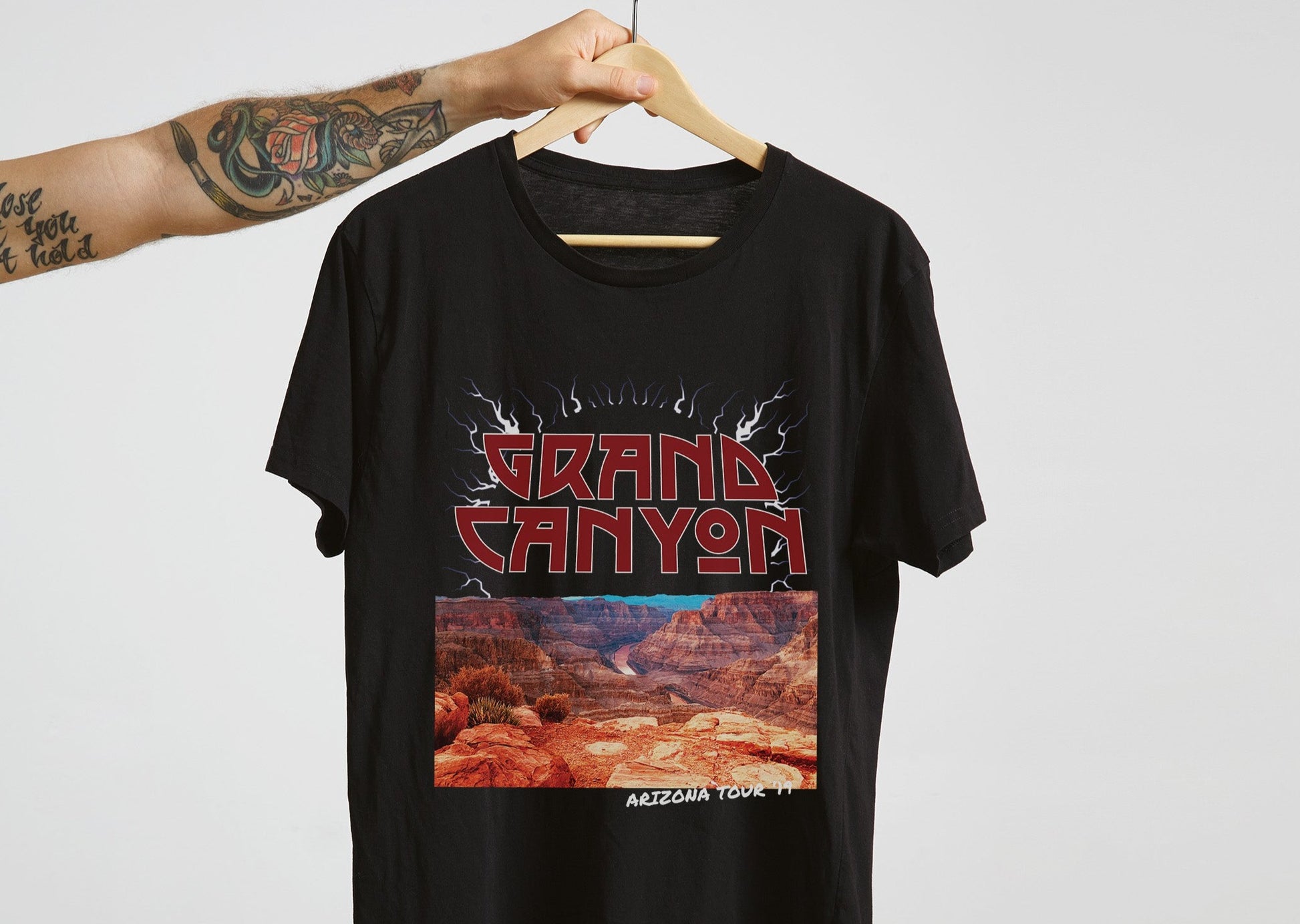 Inspired by classic 80's rock band tour shirts, this national park themed band shirt celebrates Grand Canyon National Park.