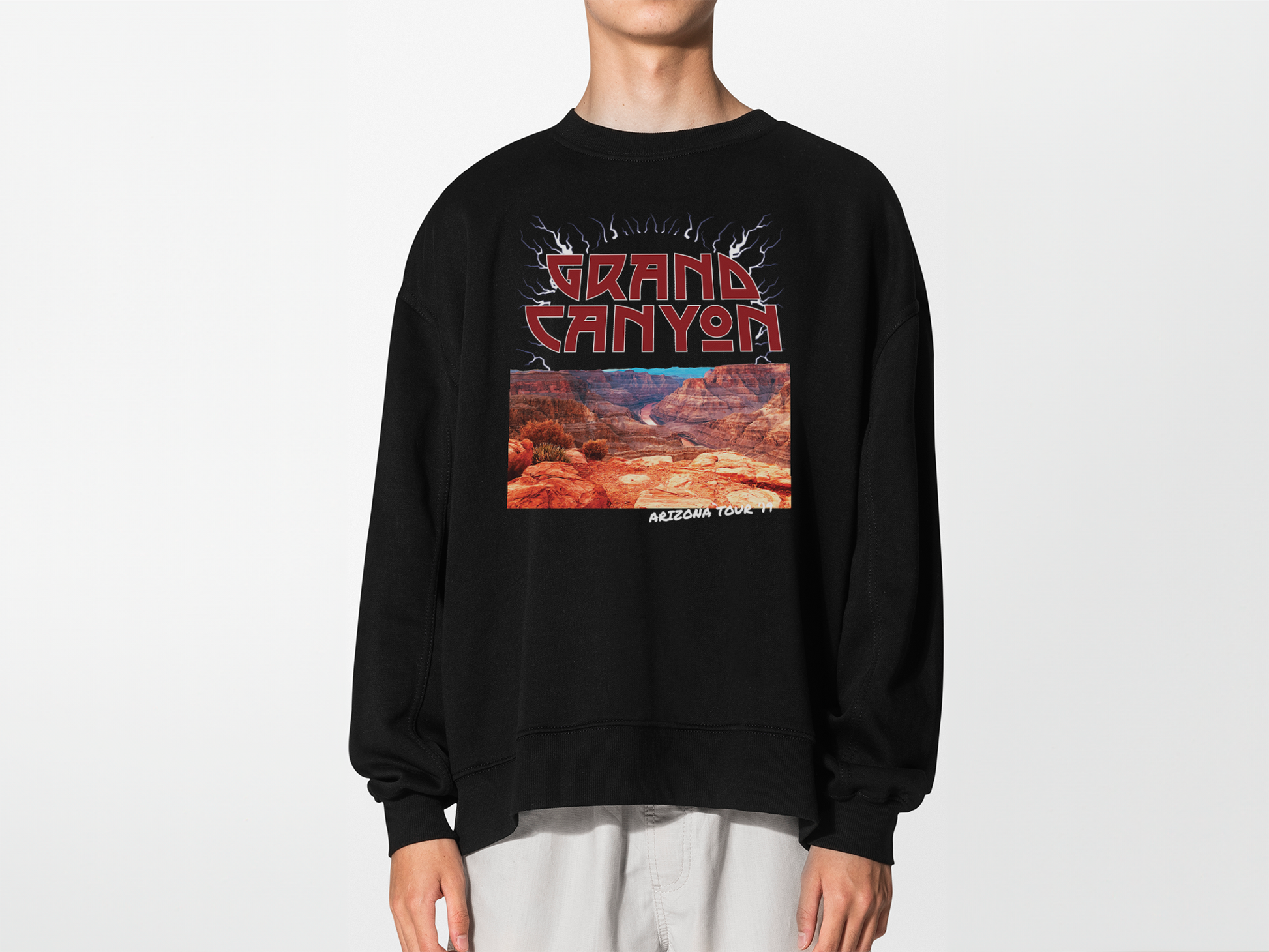 Inspired by classic rock band tour shirts, this national parks themed band crewneck celebrates the grandeur of Grand Canyon National Park.