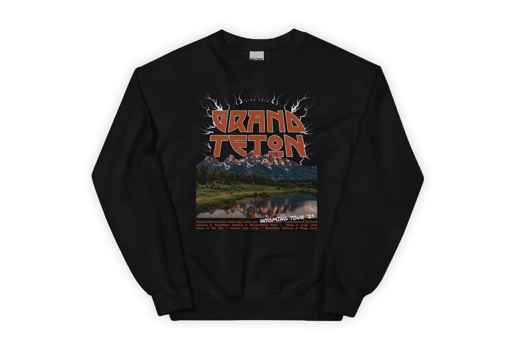 Inspired by classic rock band tour shirts, this crewneck celebrates Grand Teton National Park.