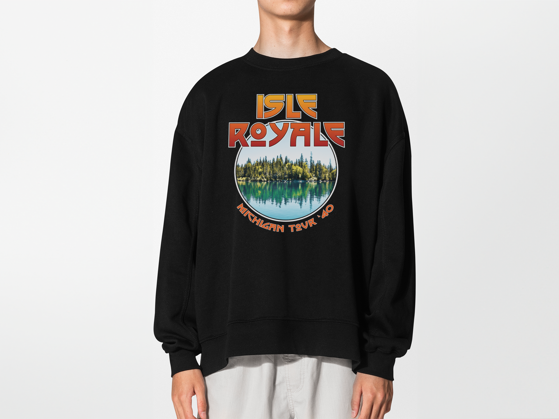 Inspired by classic rock band tour shirts, this national parks themed band crewneck celebrates the grandeur of Isle Royale National Park.