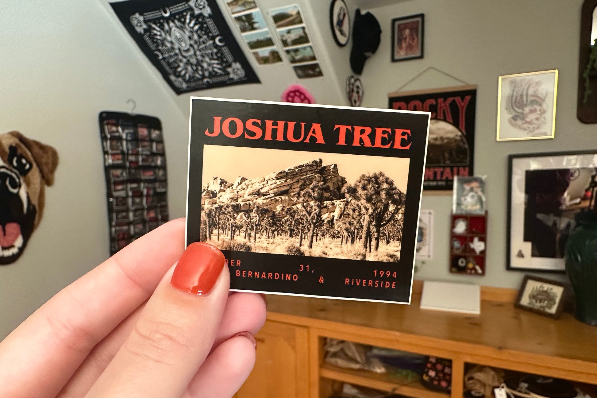 Inspired by rock band tour shirts, this design celebrates Joshua Tree National Park.