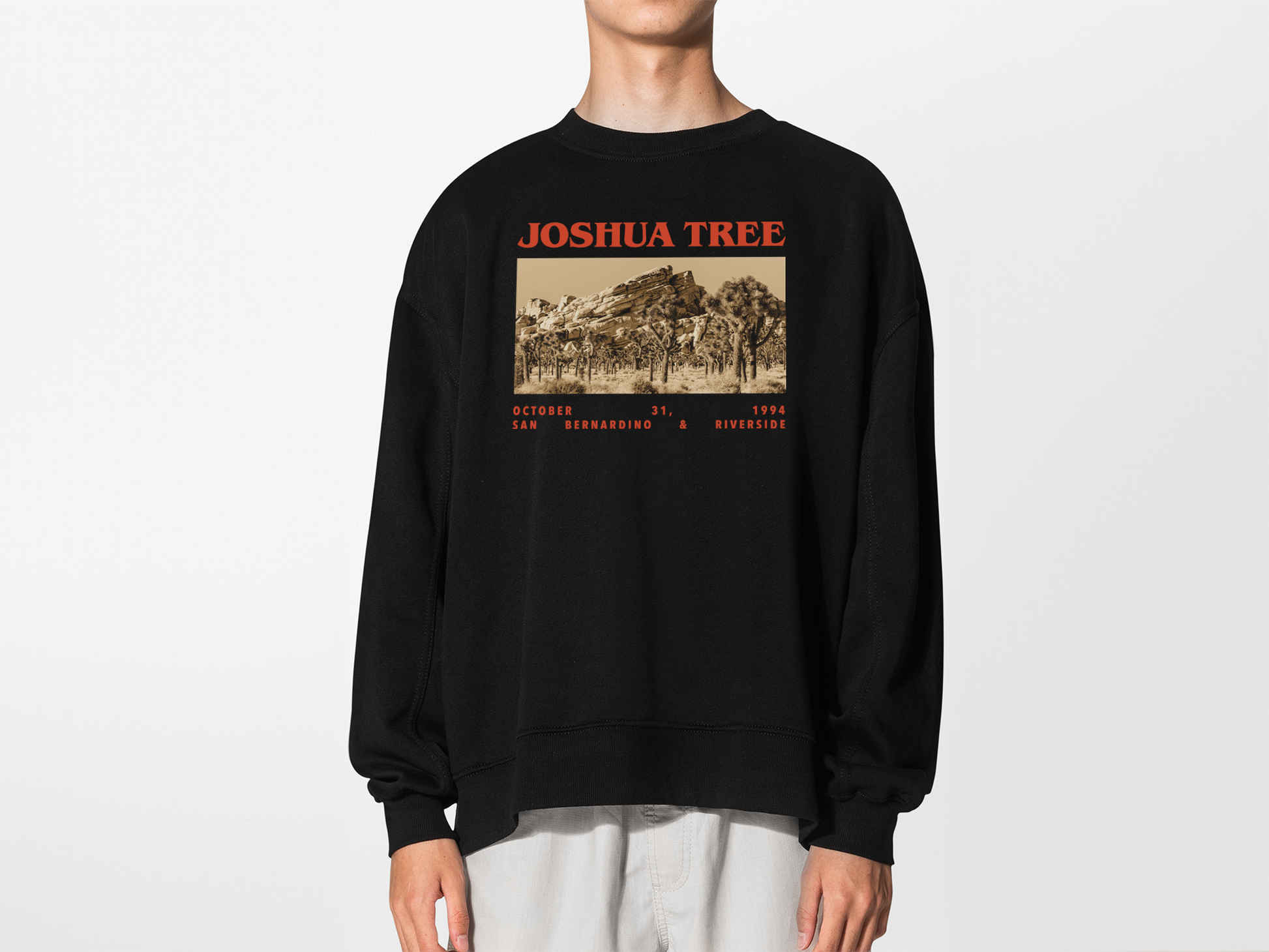 Inspired by classic rock band tour shirts, this national parks themed band crewneck celebrates the grandeur of Joshua Tree National Park.