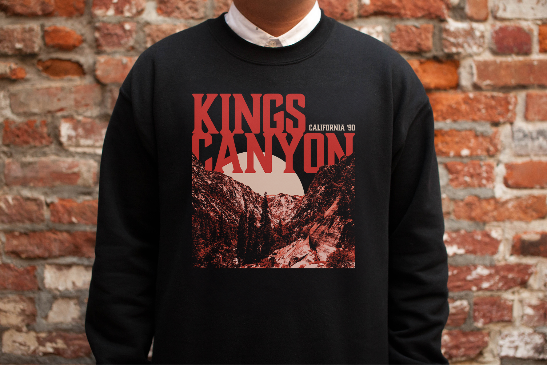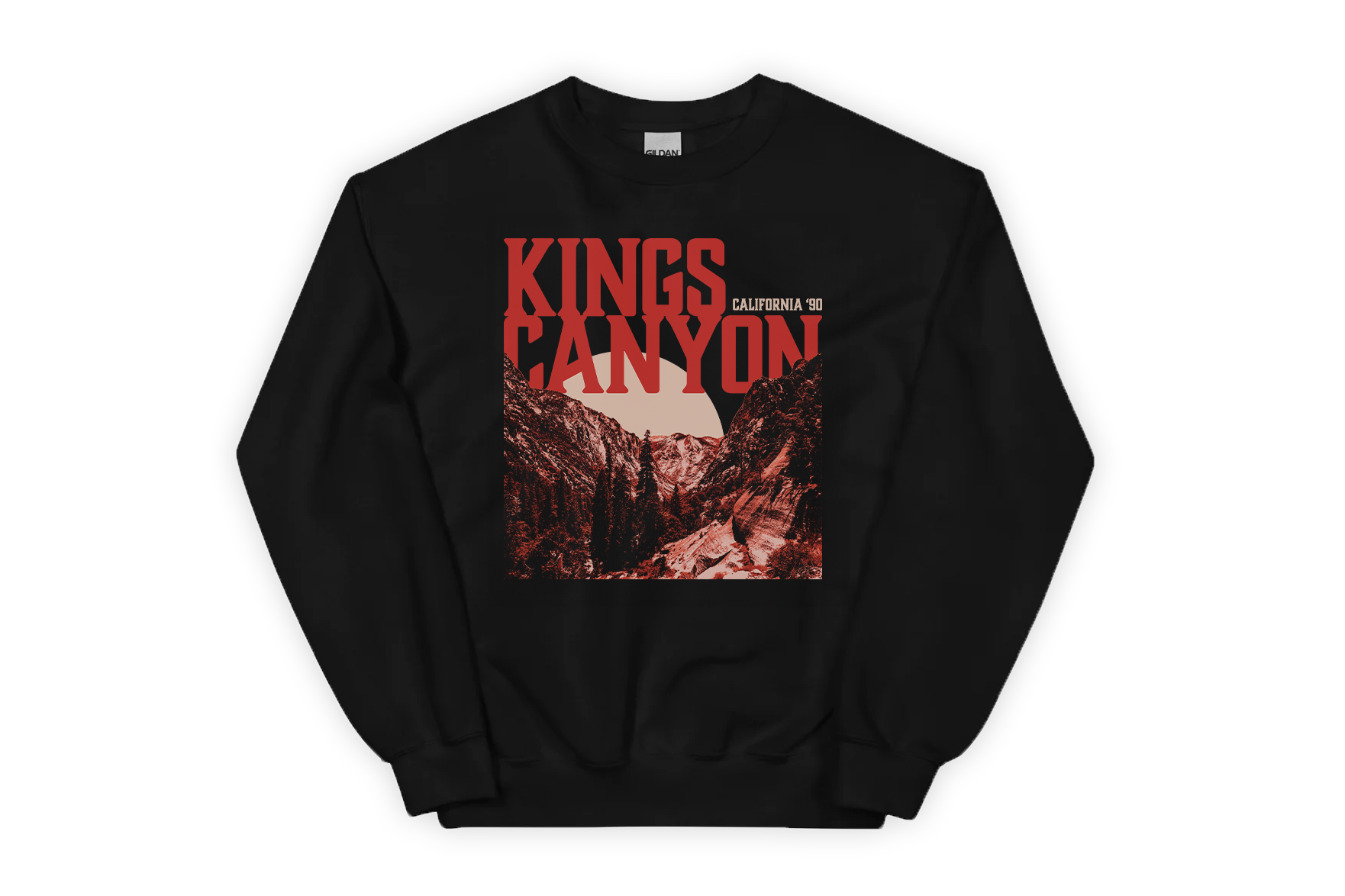 Inspired by classic band tour shirts, this national parks themed crewneck celebrates Kings Canyon National Park.