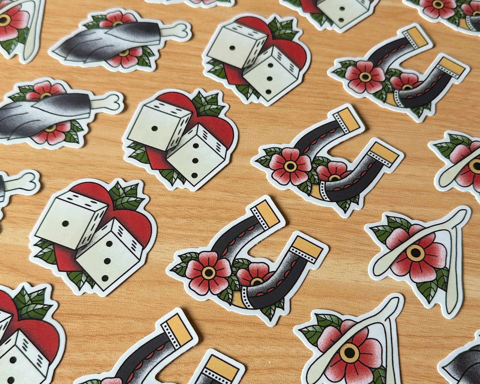 Stickers are made of a durable vinyl able to withstand scratches, sunlight, and water.