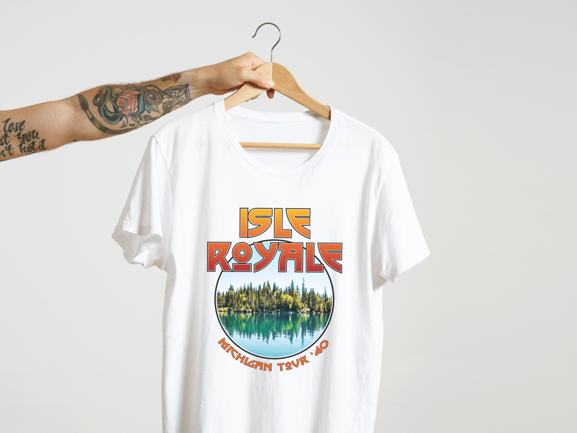 Inspired by classic 80's rock band tour shirts, this national park themed band shirt celebrates Isle Royale National Park.