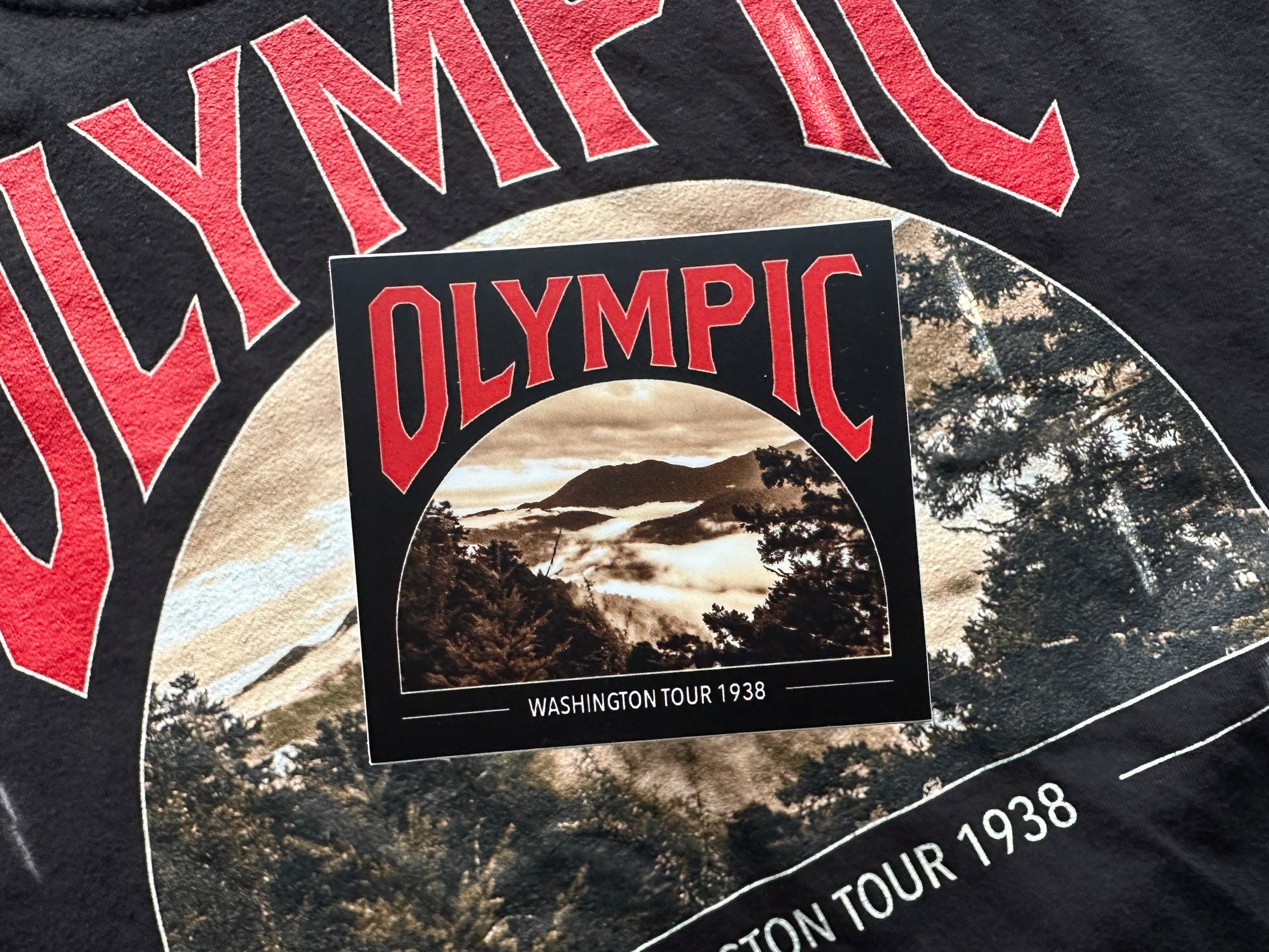 Inspired by classic rock band tour shirts, this design celebrates Olympic National Park.