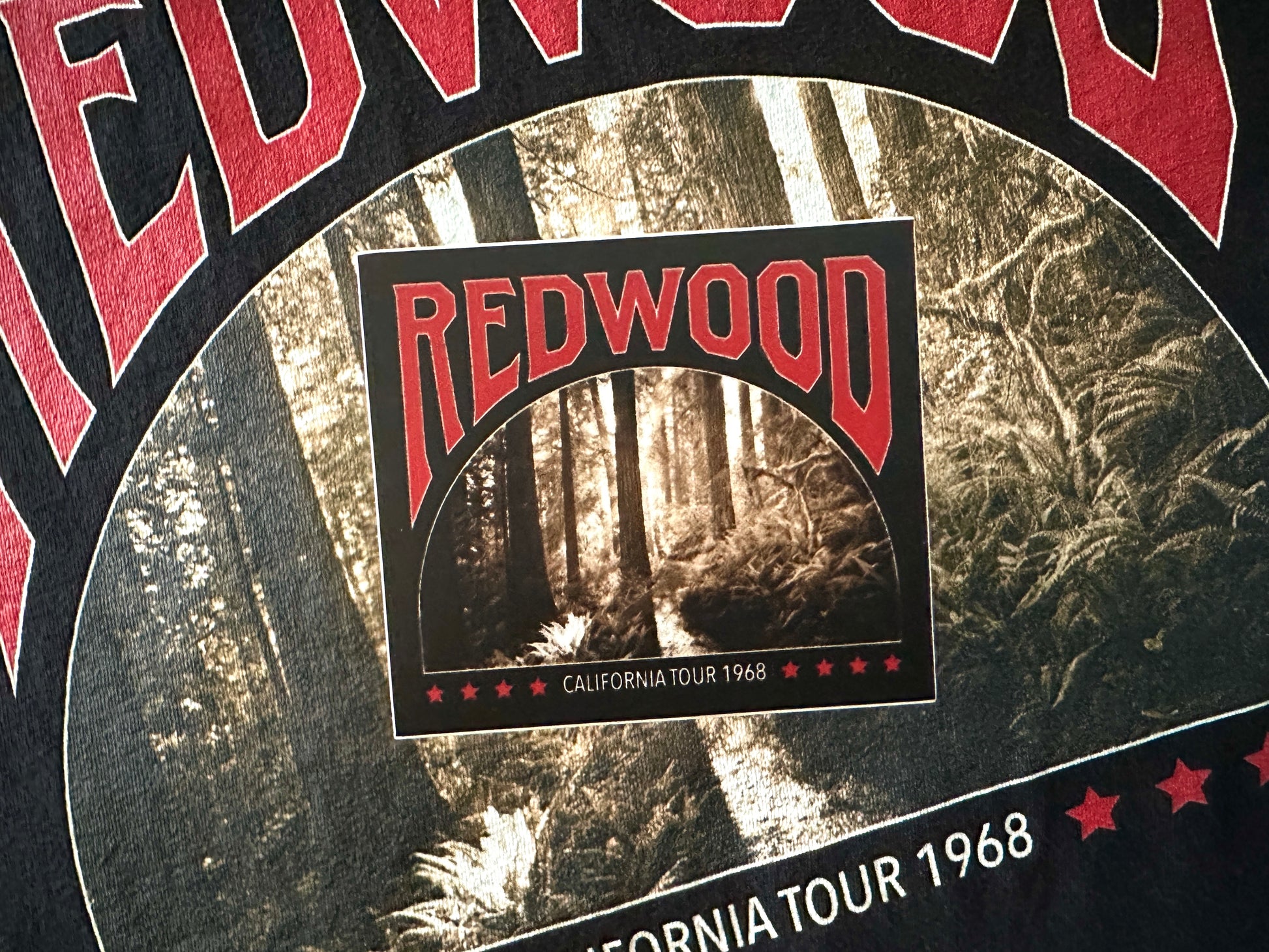 Inspired by classic rock band tour shirts, this design celebrates Redwood National Park.