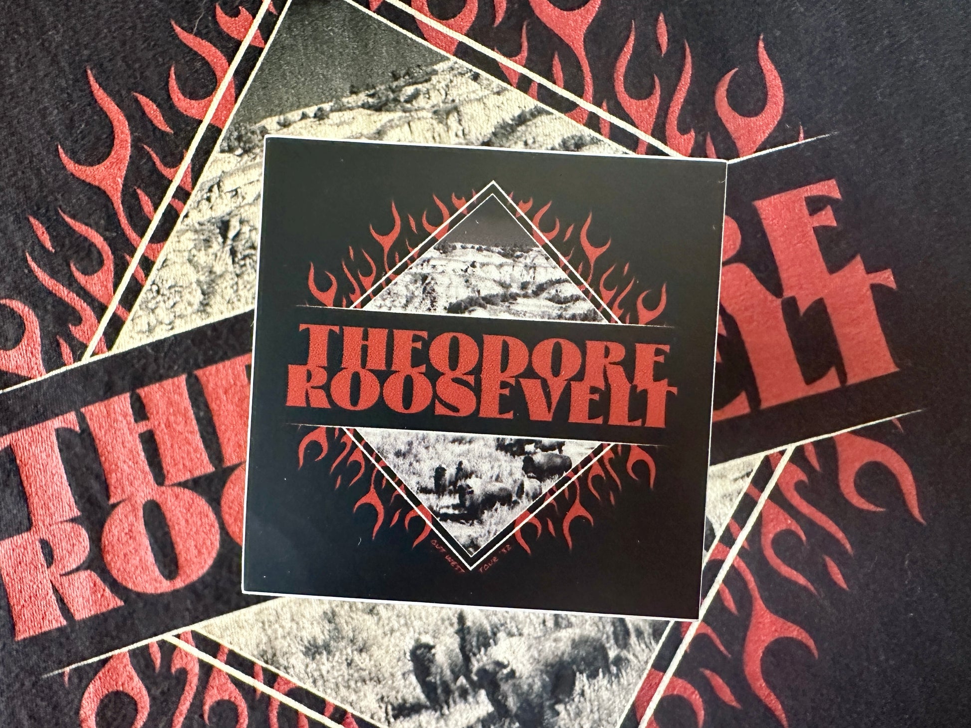Inspired by classic band tour shirts, this design celebrates Theodore Roosevelt National Park.