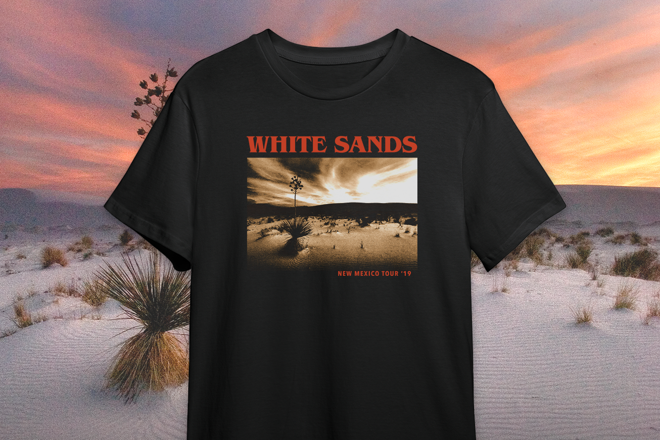 Inspired by classic rock band tour shirts, this band themed national park shirt celebrates White Sands National Park.