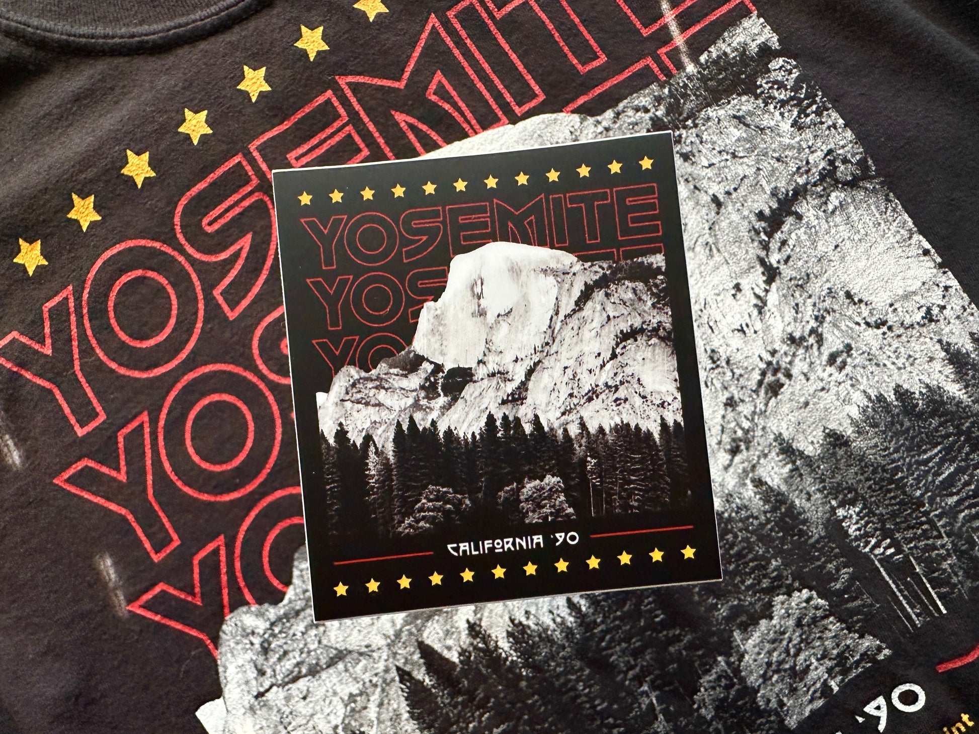 Inspired by classic rock band tour shirts, this design celebrates Yosemite National Park.